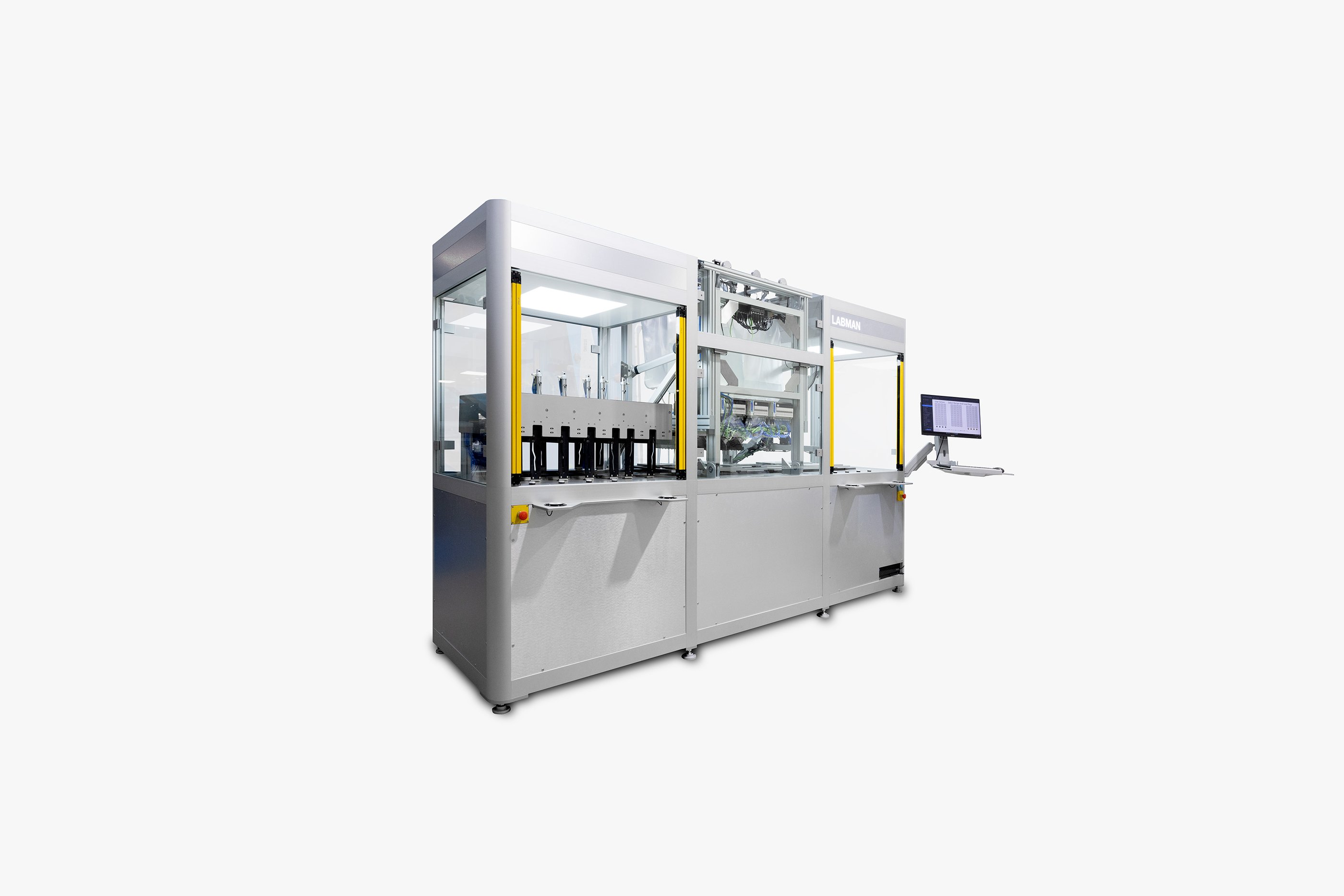 Capping/decapping stationsMultiple bottle cappers ensure the bottles are always sealed to a set torque level when transported, helping to prevent solvent spills and reducing evaporation. Each station subsequently de-caps and recaps the bottles as necessary
