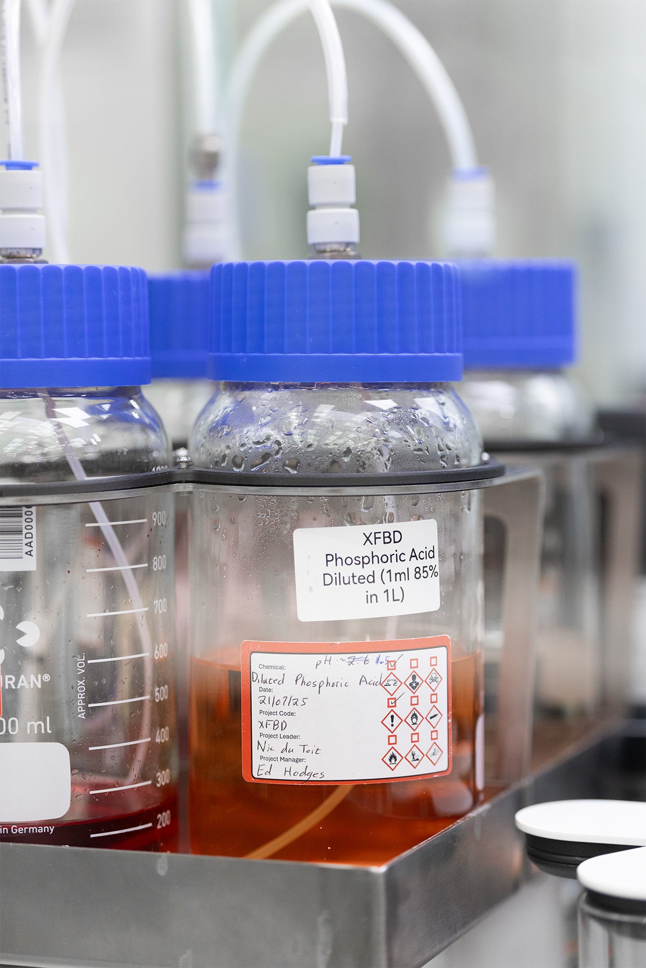 Bulk liquid storageAll the bulk liquids are stored on a trolley which can be pulled out and are connected with quick disconnect fittings.