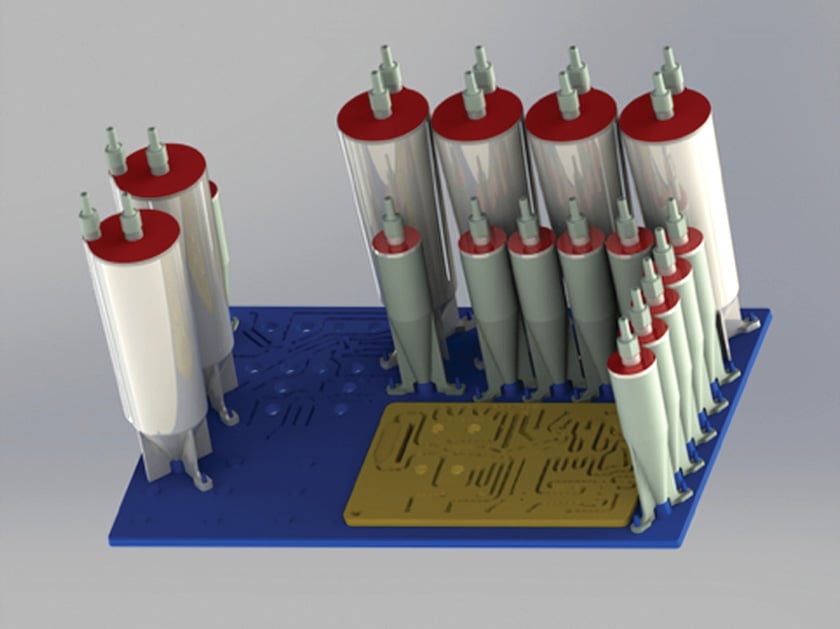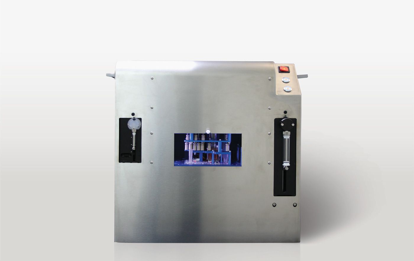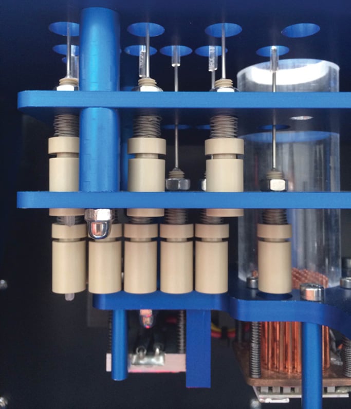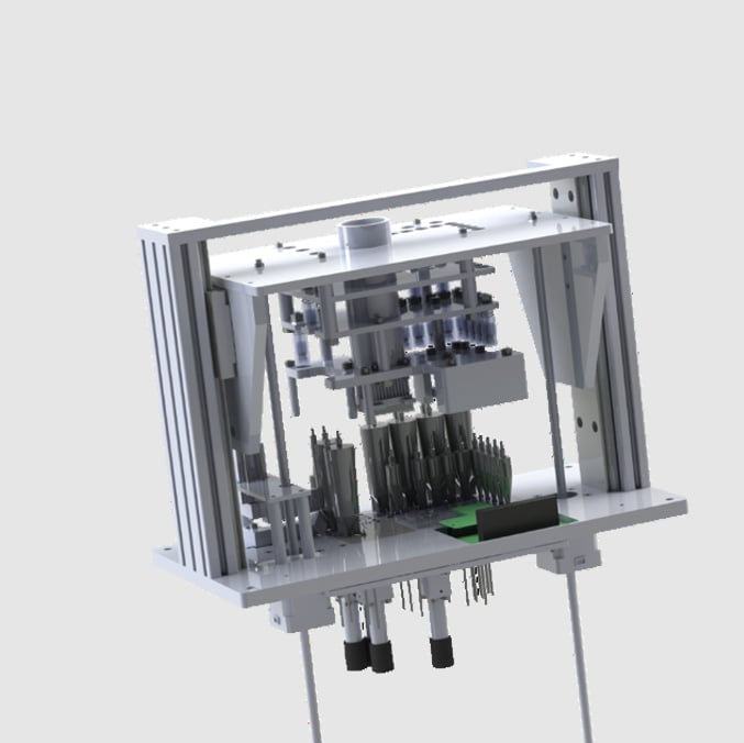 Precise flow pathsThe precise flow and positioning of 20 micro litres of blood plasma and 10 micro litres of reagents is achieved using a combination of syringe drives, pneumatic valves, servo motors and laser sensors.