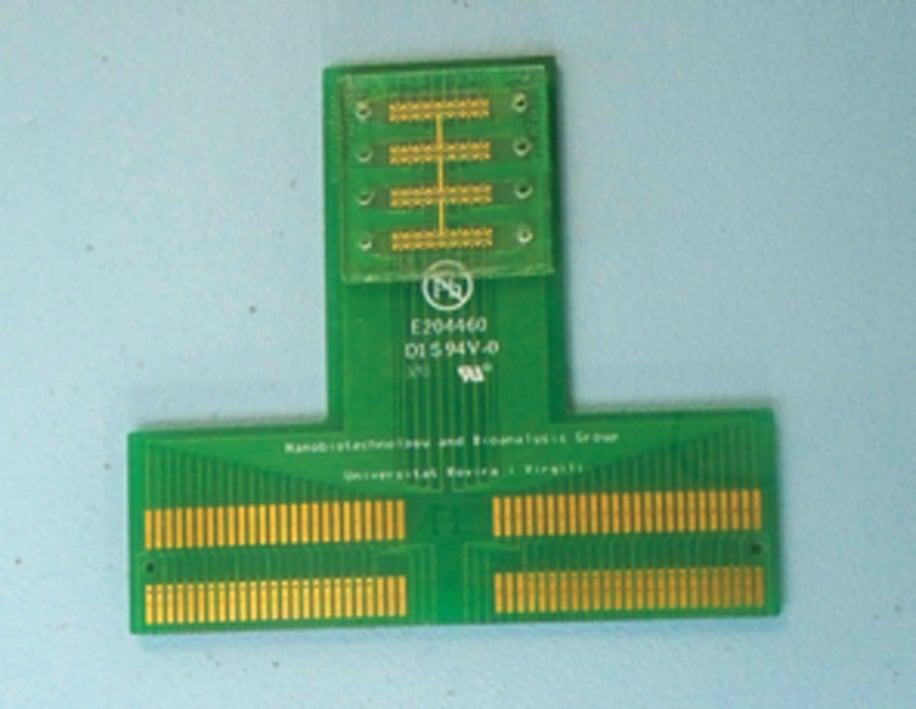 DNA detection potentiostatLabman developed a DNA detecting potentiostat that measures the interaction between DNA and specific bio-markers. This is a very fast, parallel electrode system. The 64 individual gold electrode chips are fabricated and functionalised with complimentary bio-marker DNA at different concentration levels by Rovira i Virgili University in Spain.